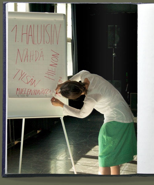 "Tanssii vastausten kanssa -pienoisteos saa vaikutteita kunkin illan yleisön ajatuksista ja mietteistä. Kerätty materiaali muotoutuu osaksi tanssia takahuoneessa. Pienoisteos tutkii, kuinka ja millä menetelmillä koreografia voisi heijastaa ympäröivää todellisuutta." Kirsi Saastamoinen